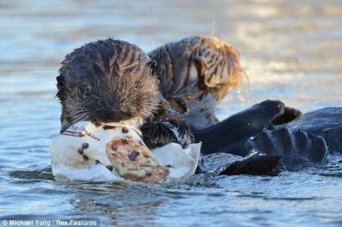 海獭妈妈:“傻孩子,别吃塑料包装纸!”