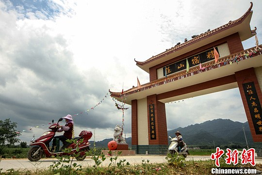 6月7日,两位农妇骑电动车在广西上林的村庄间行走。中新社发 方冰冰 摄