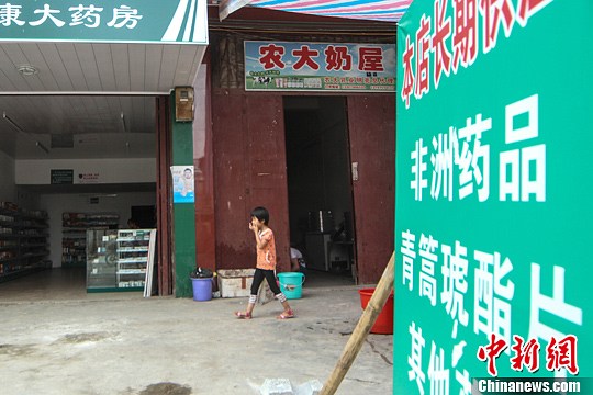 6月7日,广西上林一药店打出招牌:长期供应非洲药品。中新社发 方冰冰 摄