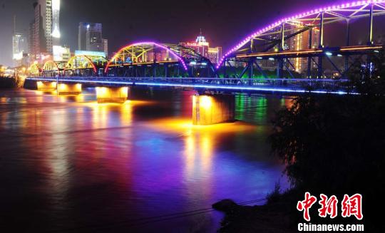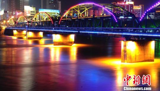 7月中旬,兰州夏日夜色斑斓,百年黄河老桥——中山桥在霓虹灯光和黄河水的映衬下光影琉璃,引行人驻足流连。杨艳敏 摄