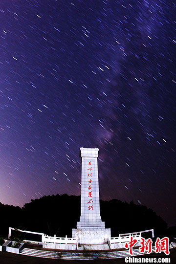 图为龙山公园用长时间曝光拍摄的纪念碑与星轨 。邓龙华 摄