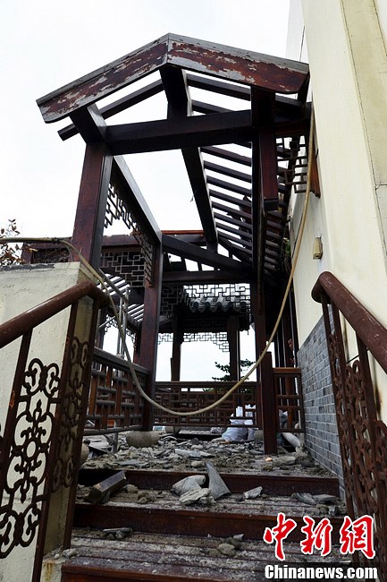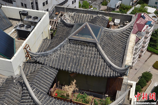 8月19日,一支施工队伍正在拆除位于江苏苏州市三香大厦高楼18层楼顶东侧阳台的“苏州园林”式违建别墅,工人们透露全部拆除至少需要一星期的时间。当日,现场一片狼藉,屋内原本有一些家具已经搬走,四周围的窗户和玻璃也拆下整齐地放在一旁,在屋外平台凉亭一角的翘角已被拆除,一旁堆砌着砖瓦,地上散落着碎石和木块。据了解,早在2007年,该楼顶的这处“园林”违建就被媒体曝光,楼内其他业主不满,并向物业及相关部门反映,但之后就没了下文。直到近期北京“空中花园”被曝光后,苏州这一楼顶“园林”才又一次走入公众视线。