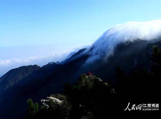 人民网南昌9月30日电 9月30日7时许,庐山小天池出现今年入秋以来首次云雾景观,远远望去,云雾流动,蔚为壮观。(肖成 吴健/摄)
