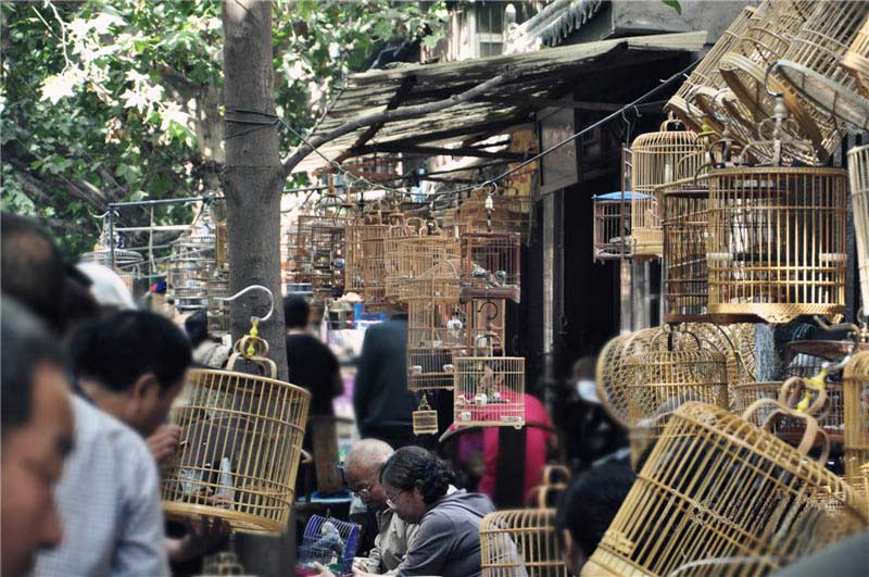 沿着小巷往深走,甚至不用看标识,就随着人群的挤拥,拐上三两次弯儿,便会发现提着鸟笼的老人。再往深走,就能看到偌大的西仓鸟市市场,只见沿巷两旁陈列着种类繁多的鸟还有配套的鸟笼、鸟食……而这其中,最让人心动的,便是长年在小巷中卖鸟买鸟……甚至只是为了将自己的心爱之物拿出来与志趣相投者共同把玩的人。