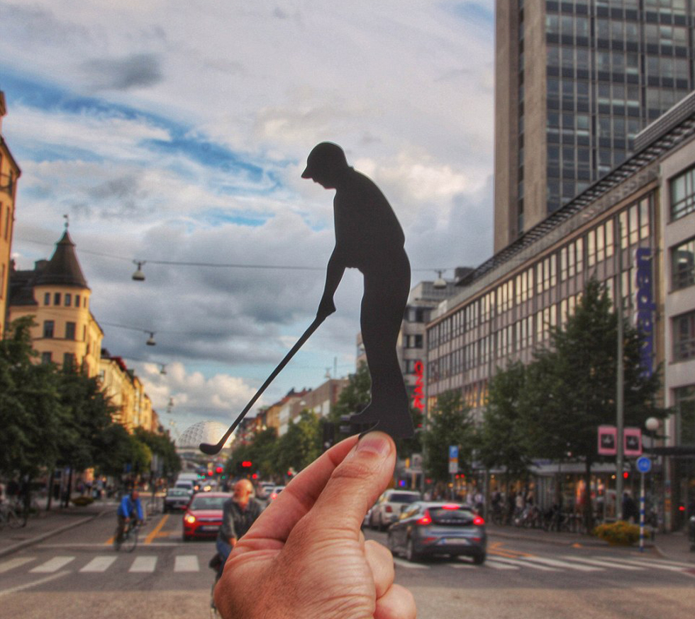 从不同的角度来看,同样的爱立信球形体育馆看起来更像高尔夫球,剪纸高尔夫球手正要击飞它。(网页截图)
