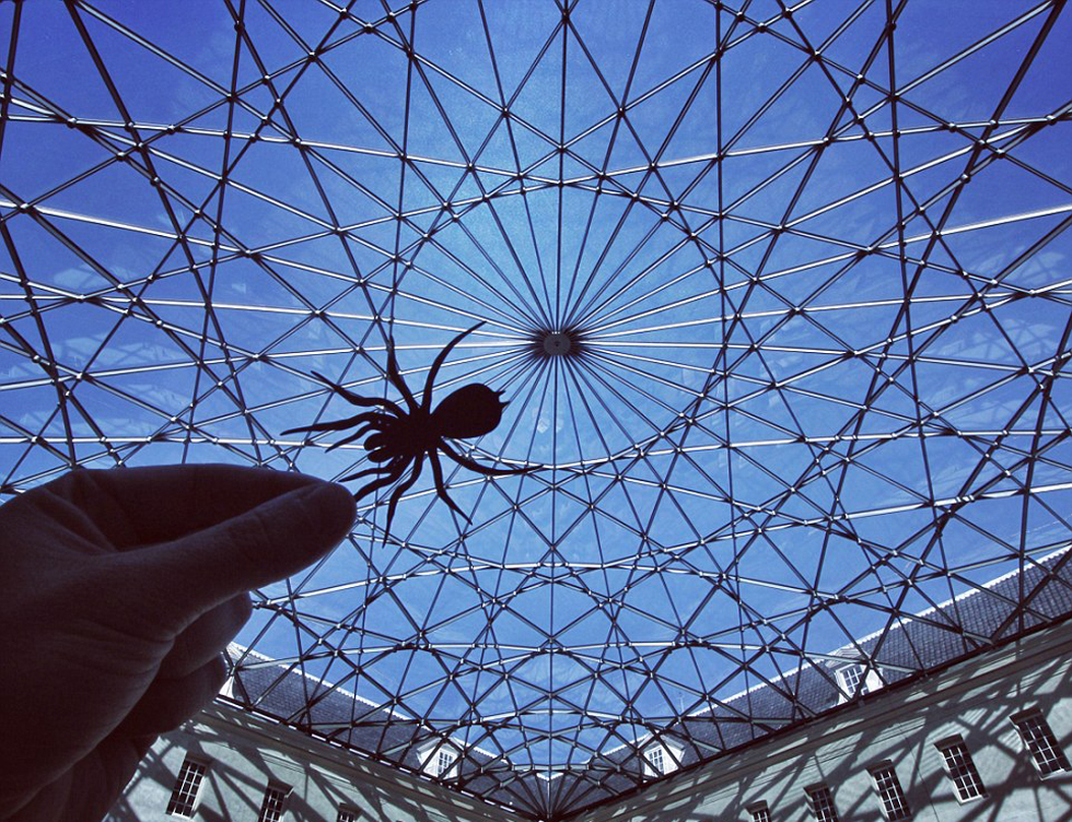 伦敦海事博物馆纵横交错的天花板为麦克尔创造的蜘蛛剪纸爬行提供了完美蛛网。(网页截图)