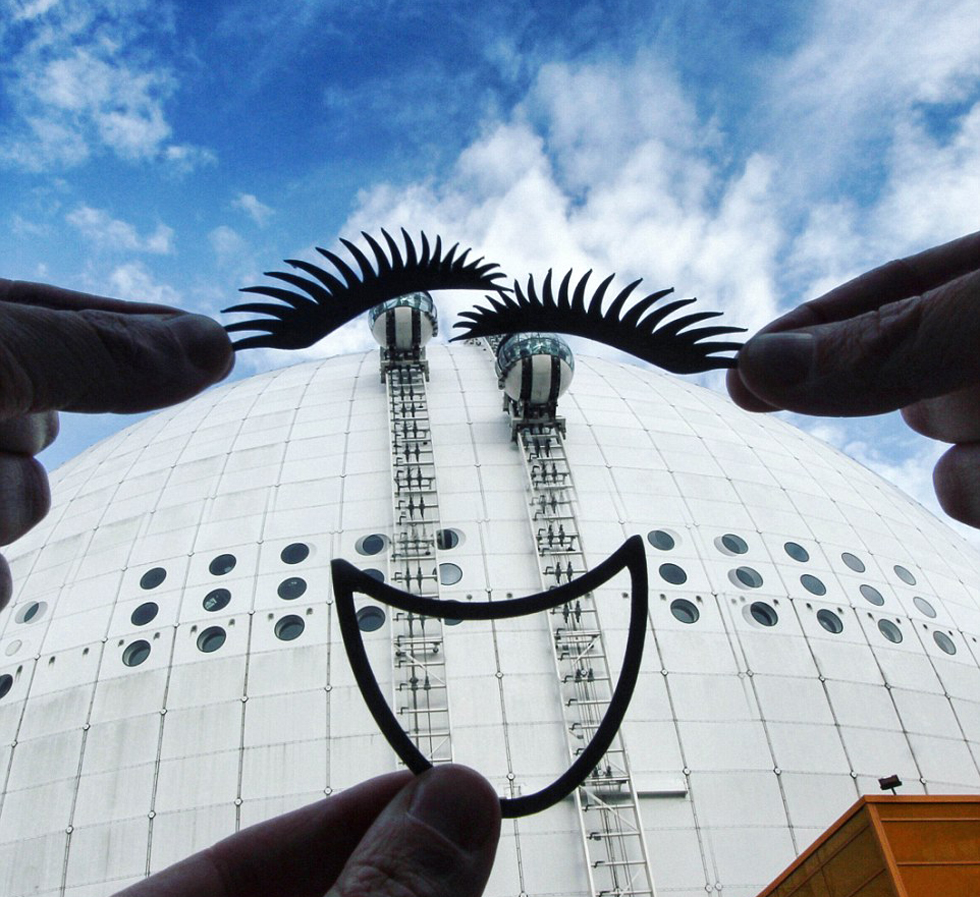 在瑞典期间,麦克尔也忍不住将爱立信球形体育馆变成笑脸。(网页截图)