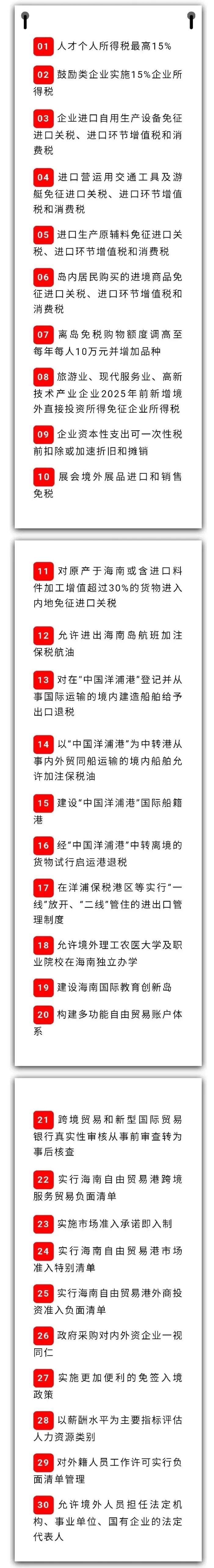 2020年6月1日,中共中央、国务院印发《海南自由贸易港建设总体方案》。总体方案包括总体要求、制度设计、分步骤分阶段安排和组织实施四大部分。根据方案内容,我们从大量优惠政策中精选出60条。