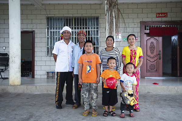 瑞丽市勐秀乡户瓦村,景颇族青年勒干(左一)和家人其乐融融。(贾翔 摄)