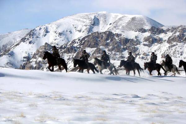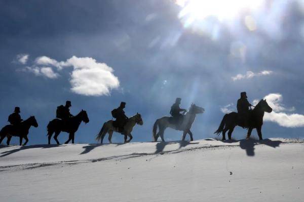 骑马前往海拔4986米的山口进行巡逻