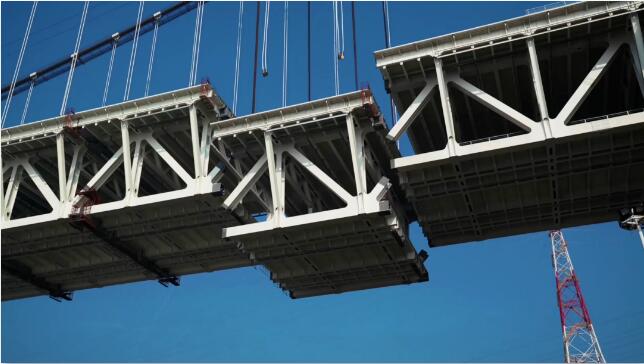 相对其他桥梁结构,悬索桥在荷载作用下容易产生变形。为了保障运行安全,必须做到“刚柔并济”,给柔软的悬索桥添几分“硬气”。铁路桥梁建设者加大科研攻关力度,采用先进桥梁结构,创新施工工艺和检测技术,研发应用新材料、新技术、新装备,保证了大跨度悬索桥施工安全和质量。