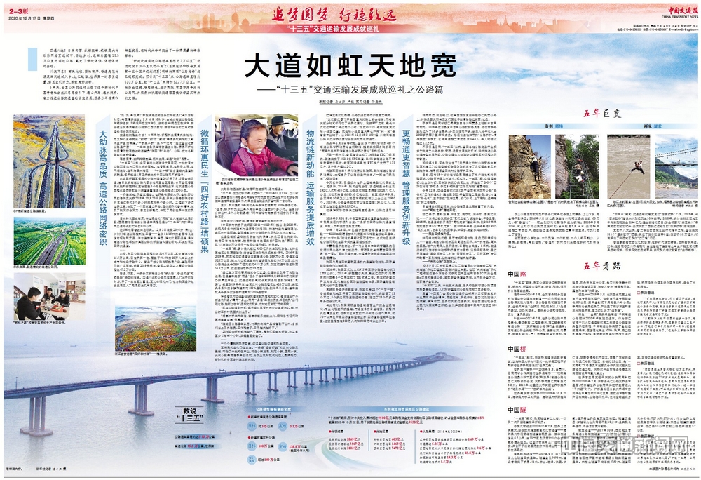 5年来,全国公路交通行业在习近平新时代中国特色社会主义思想指引下,逢山开路、遇水架桥,奋力推进公路交通基础设施发展、服务水平提高和转型发展,在时代大考中交出了一份高质量的精彩答卷。