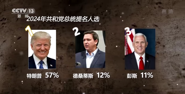 哈佛大学美国政治研究中心与哈里斯民调为美国《国会山报》进行的一项新调查显示,截至目前,在2024年共和党总统提名人的8名潜在人选中,特朗普以57%的支持率稳居第一,佛罗里达州州长德桑蒂斯和前副总统彭斯分别以12%和11%的支持率位居第二和第三。