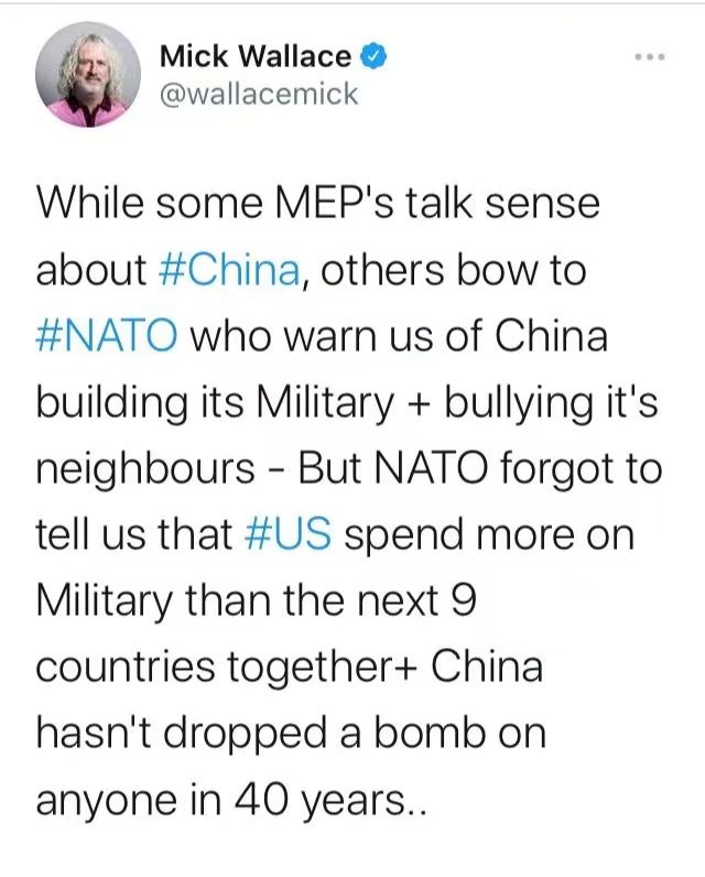 新华社北京7月7日电 欧洲议会议员米克·华莱士日前在社交媒体上发文,并发布了一段自己近期的发言视频,批评北约唯美国马首是瞻炒作“中国威胁论”的做法。