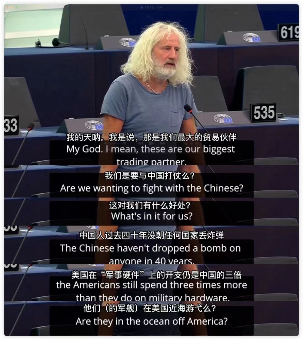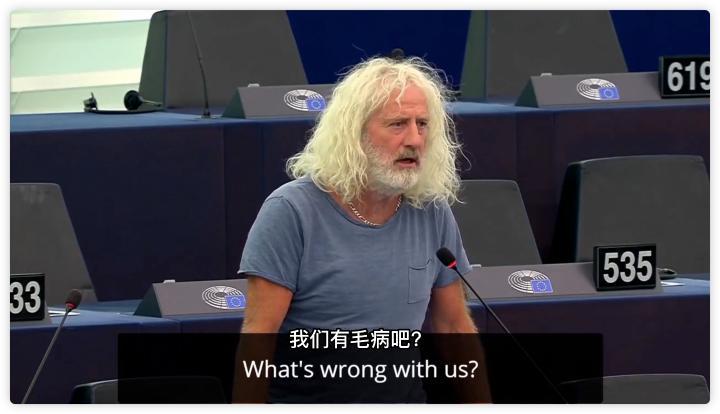 华莱士向欧洲议员们发出灵魂拷问,“我们是要与中国打仗么?这对我们有什么好处?”他万般无奈地自嘲说:“我们有毛病吧?”