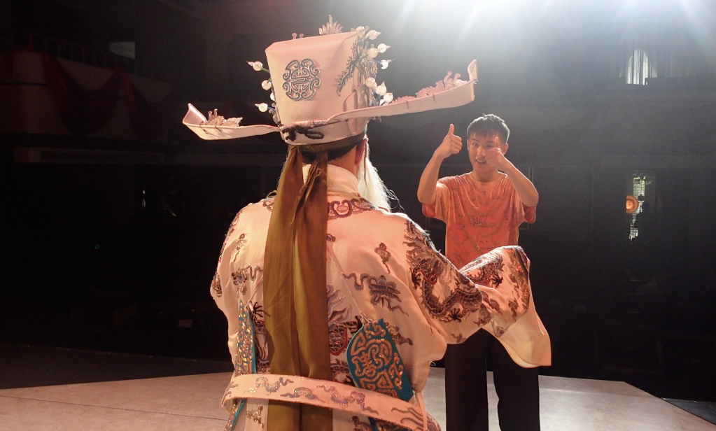 初登黄梅戏的舞台,韦斯特的动作虽不那么熟练,但在老中青三代黄梅戏人细致投入的指导下,他读懂了中国传统戏剧背后的民俗故事和精神传承。