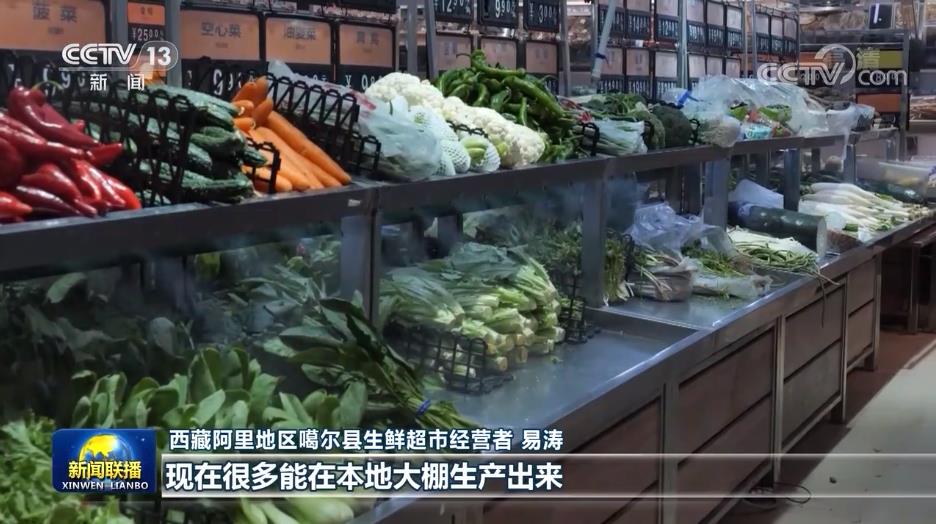 西藏阿里地区噶尔县生鲜超市经营者 易涛 :以前不易保存的一些叶子类蔬菜,现在很多能在本地大棚生产出来,就是这个变化也是非常明显,一来品种多,二来新鲜度有保障,三来成本也是有所下降的。