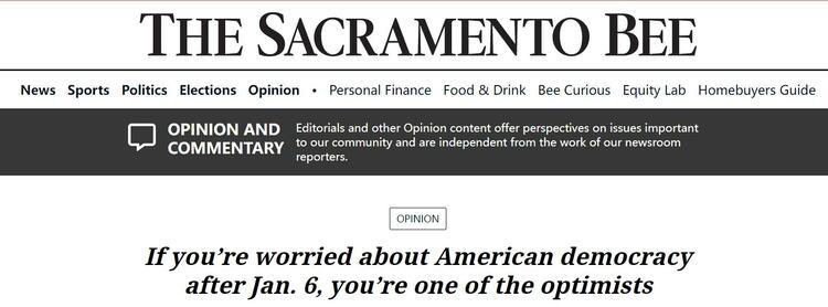 《萨克拉门托蜜蜂报》(The Sacramento Bee)网站 7月10日发表评论文章称,如果你在2021年1月6日国会山骚乱事件后开始为美国民主感到担忧,那么你只能算一位乐观主义者。文章指出,根据经济学人智库(Economist Intelligence Unit)的分析结论,美国民主“存在缺陷”。此外,位于美国弗吉尼亚州的超党派研究机构“系统和平中心(Center for Systemic Peace)”则评估认为,美国已低于“民主门槛”。