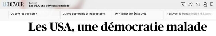 加拿大《责任报》(Le Devoir)网站 近日发布一篇题为《美国,民主病态尽显》的分析文章,对美国最高法院推翻近50年前有关女性堕胎合宪权的“罗诉韦德案”进行报道。文章认为,美国宪法在许多方面是不完整、不明确甚至是过时的,美式民主或将沦为笑柄。