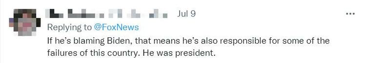 如果他(特朗普)要怪罪拜登,那么就意味着他也要为这个国家的部分失败负责。毕竟他也曾是总统。