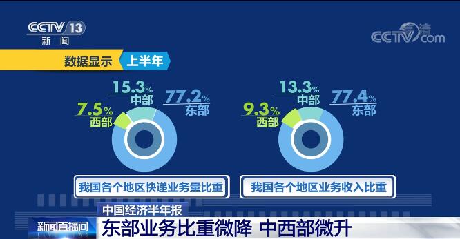 原标题:中国经济半年报 | 我国东部地区邮政快递业务比重微降 中西部微升