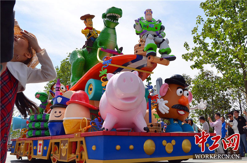 “米奇童话专列”是一辆魔法火车头,里面跟着的每辆花车都以一部迪士尼电影中的角色、故事和音乐为主题。玩具总动员、海底总动员、冰雪奇缘、花木兰等都将在花车上亮相。巡游将穿越6大主题园区,走在园区的路上就能邂逅浩浩荡荡的巡游车队。(中工网记者 秦笑语摄)