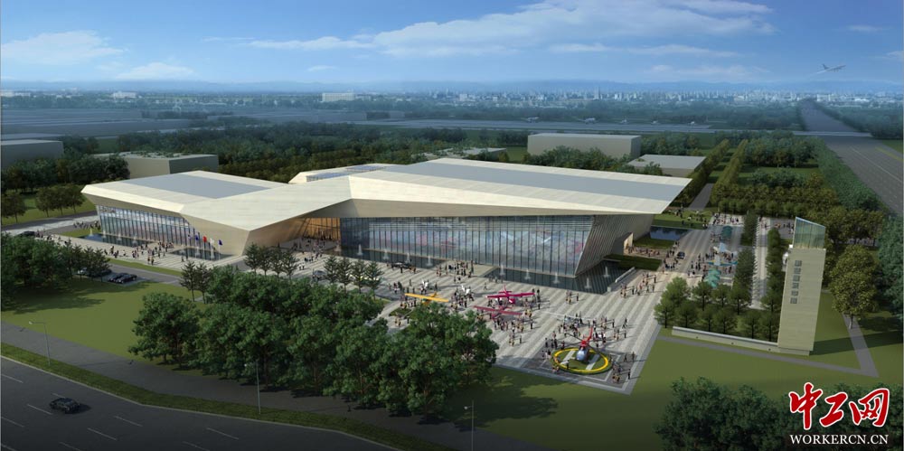 据悉,石家庄国际航空工程中心项目为中国北部最大的航空飞机展览中心,于今年5月份才正式开工。中建二局总承包该工程,将正常一年半的工期缩短至130天,还有两个月以上的时间为暑期,其中安装公司承担了项目85%以上的工程量,装饰公司仅用45天便完成了13000多平米的装修任务。建筑工人24小时轮班不间断施工保证了航展的如期进行。(秦笑语 摄)