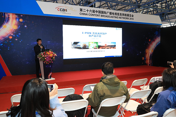北京吉视汇通科技有限责任公司展示了“I-PON万兆光纤”新产品。当前广电行业的发展形势严峻,吉视集团在对各类网络应用服务系统进行深入分析,对广电网络现有电缆网和单向广播网技术的制约问题后,创造性地提出了“以万兆广播接收芯片为核心技术的IP广播光纤入户整体解决方案”。该方案的推广应用,提升广电网络传输带宽,达到入户带宽万兆,可向用户提供高清、超高清、3D等广播点播视频业务;提供漫游世界的互联网业务;语音和视频通讯业务;网上医疗、网上教学、网上电商业务和家庭安防等智能家居业务,对广电网络的发展将产生革命性的深远影响。