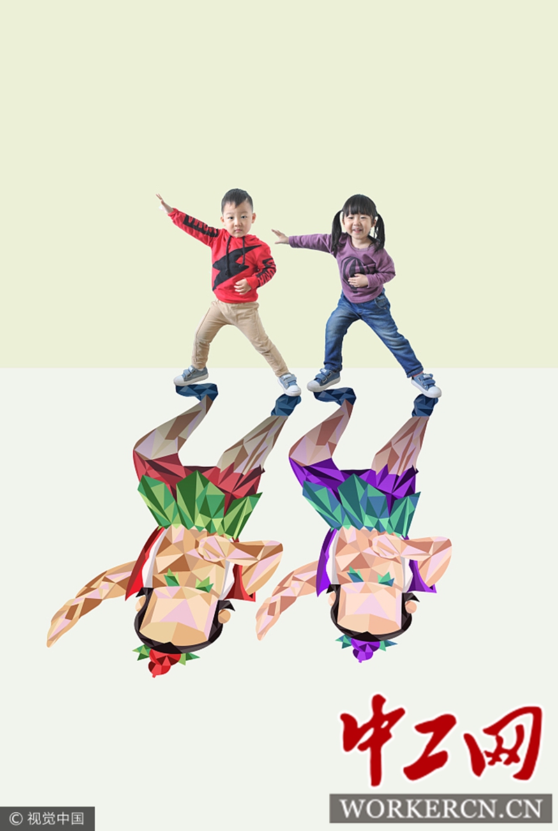 木木和朵朵是龙凤胎,他们一起做出葫芦娃团结一致的动作。