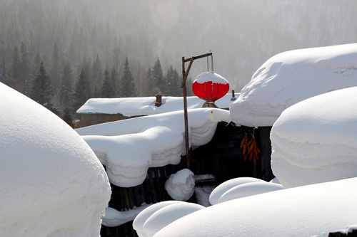 雪乡拥着层层叠叠的积雪,百余户的居民区犹如一座相连的“雪屋”,房舍随物具形的积雪在风力的作用下可达1米厚,其状好似奔马、卧兔、神龟、巨蘑……千姿百态,仿佛是天上的朵朵白白云飘落,雪乡从初冬冰花乍放的清晰到早春雾淞涓流的婉约,无时无刻不散发着雪的神韵,因此得名-中国雪乡。景色秀丽民风淳朴气候独特的“中国雪乡”双峰景区是大海林风景区的重要组成部分,积雪期长达七个月,积雪深达2米,皑皑白雪在风力的作用下随物具形,千姿百态,雪乡的夜景尤为美丽,淳朴的雪乡人在自家挂起大红灯笼,洁白如玉的白雪在大红灯笼的照耀下,宛如天上的朵朵白云飘落人间,幻化无穷。