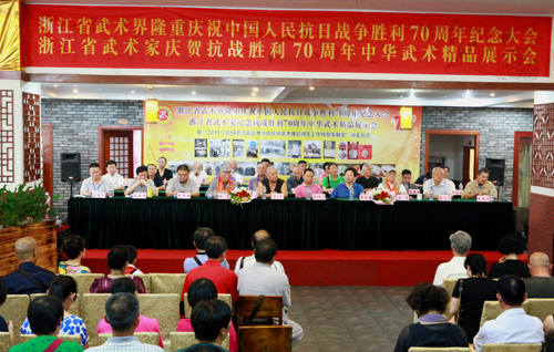 来自浙江武术界的百余位高手、专家们欢聚一堂,共切磋武艺,隆重庆祝中国人民抗日战争胜利70周年。中国武术九段、浙江武协常务副主席陈顺安、武林名家任寿林、周林敏、严国兴、陈国新、厉志伟等出席活动。