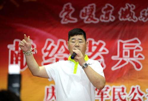8月1日,大山在为抗战老兵和老红军们演唱《走山河》。 王振摄