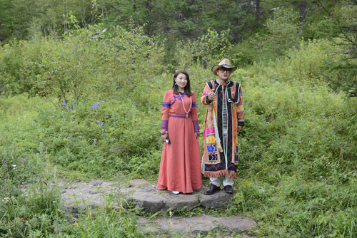 阿尔山奥伦布坎景区扮演部落酋长和女儿的工作人员 (黄洪峰摄影)