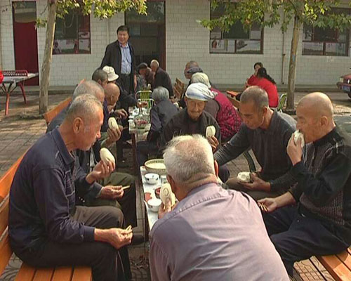 午饭期间,80岁的刘永茂老人边吃边说:“老年人在这里,能吃、能玩、能聊天,每天过的非常快乐”。据了解,每顿午饭每个老人自己出一元钱,政府补助每人两元钱,普通家常饭每周七天不同样,如烩菜、擀面、糊包、臊子面等。