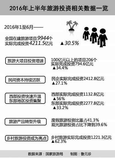 今年以来,各地纷纷开启全域旅游的实践,尤其在乡村生态、民俗文化等方面颇受关注。数据显示,今年上半年,乡村旅游实际完成投资1221.3亿元,较去年同期增长62.3%。同时,城市旅游服务设施的建设力度也在加大。