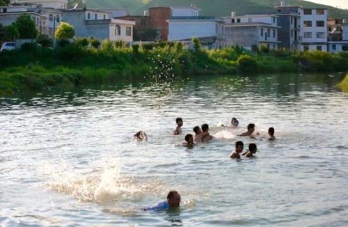 萍水河是桥头村人民的母亲河,河水清澈见底,两岸绿草如茵,平静的河面吻着流云的倩影,小鱼小虾自由地游玩,“金秋飘落叶,河水浮群鸭,不知河已寒,为何不归家?”,连成群的鸭子都舍不得回到窝里去;五年的封山育林、农田改造、环境整治,带来了桥头村自然环境的彻底改善,现在大河里的鱼儿多了、肥了,小河里的虾米、螃蟹到处可见,桥头村的小伙伴们,一放下书包就提着小桶子到小水沟里抓螃蟹,这种儿时的记忆将伴随着他们的成长,在这里萍水河成了桥头村人免费的天然游泳场,河水里的嬉戏打闹成了孩子们的乐园。