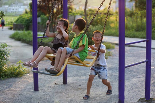 桥头村孩童在新建村健身广场上快乐的玩耍