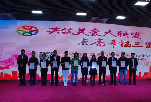 本网讯3月16日,北京市朝阳区三里屯街道“共筑关爱大联盟 点亮幸福三里屯”商务楼宇志愿服务项目表彰推广活动拉开了帷幕。现场,除了对2016年在关爱联盟活动中涌现出来的十佳优秀项目和十佳优秀个人进行表彰外,更有百余家爱心企业参与到街道关爱联盟项目认领活动中来,近90个便民服务项目获爱心企业认领,涵盖便民服务、孝老敬亲、扶贫助困和环保风等项目。