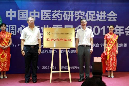 本网讯 6月18日,由中国中医药研究促进会调心专业委员会、北京天健医院联合主办的中国中医药研究促进会调心专业委员会2017年年会在北京举行。五步调心临床治疗基地落户北京天健医院的揭牌仪式同时举行。来自全国各地的中医专家、学者近100多人参加了会议。