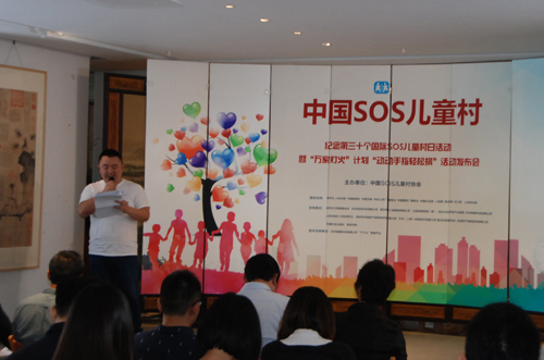 中工网讯 6月23日,中国SOS儿童村纪念第三十个国际SOS儿童村日活动暨“万家灯火”计划“动动手指轻松捐”活动发布会在京举行。中国SOS儿童村协会会长李进国、副会长兼秘书长周萍、副秘书长朱飞,中天爱心慈善基金会理事长费强、中国社会出版社社会福利分社社长金伟、星光志愿者协会会长谢海山、杭州酷眼科技有限公司总经理吴泽鑫以及十多个爱心企业代表、大学生志愿者等共计70多人参加了发布会。