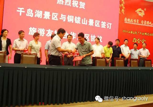 会上,广丰铜钹山景区与千岛湖景区签订了旅游友好合作协议,同时,部分浙江省投资客商代表与广丰旅游项目相关负责人现场签署投资协议,具体包括卧龙生态度假村项目、高庄养老社区项目、嵩峰农耕文化园QQ开心农场项目、万花谷慢生活休闲旅游度假区项目、铜钹山万亩高山茶项目,广丰正华酒店项目、艺术养生堂项目、正阳宫太极养生基地旅游项目、大美古韵写生基地项目、铜钹山泉矿泉水厂项目等。