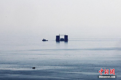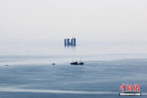 3月19日上午,山东省青岛西海岸新区灵山湾海域,正在海边散步的市民发现,在灵山岛附近,海平面出现几座高楼状的物体,原本空荡的海平面突然出现这样的奇景,多数人猜测这是“海市蜃楼”。据了解,海市蜃楼是一种因光的折射和全反射而形成的自然现象,是地球上物体反射的光经大气折射而形成的虚像。2010年和2011年该区出现过两次海市蜃楼,一处在灵山岛附近海域,另外一次是在大珠山顶。(中新社发 王培珂 摄)