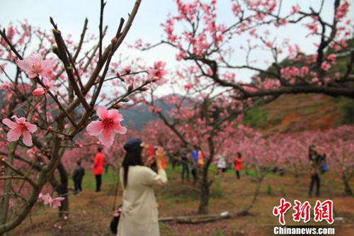 福建畲乡“桃花节”醉游人 千亩桃花竞相开放