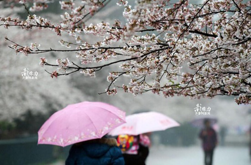 4月13日,山东地区突遭大面积降雨侵袭,虽气温骤降,但给春季扬尘易起的空气增加了不少湿润。在青岛市中山公园,雨后的樱花伴随弥漫在花丛中的湿润空气竞相吐艳。660米长的樱花街繁花似锦,漫步在繁花的樱花树下,淋一场“樱花雨”别有一番意境,置身其中仿佛进入了一个粉色的童话世界,美不胜收引客来,不少游客在此驻足拍照留念。林小木 摄 图片来源:齐鲁网