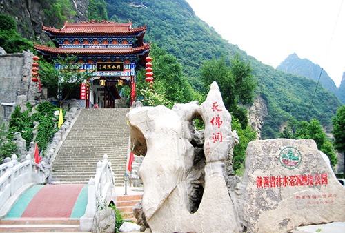 天佛洞是柞水溶洞国家地质公园的核心区,由天洞和佛洞连接而成。游程接近2公里。洞内的钟乳石千姿百态,堪与瑶林仙境媲美;洞外青峰浴水,可与桂林山水争奇。天佛洞座落在柞水溶洞国家地质公园的中心,位于海拔805米的呼应山腰。天佛洞的山门,是一幢重檐仿古建筑。门柱楹联“云绕青山山映水,树隐幽洞洞含天”。横额“北国奇观”。