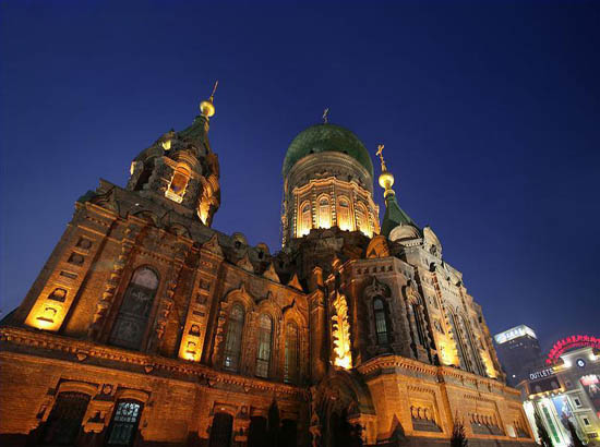 索菲亚大教堂是目前中国保存最完美的典型拜占庭式建筑,这座诞生近百年的建筑宏伟壮观,古朴典雅,充溢着迷人的色彩。整个广场凝聚着音 乐的优美旋律与建筑智慧之光。景区内建有现代化专业展馆,近千幅美的图片展示着文化名城哈尔滨的历史、现状与未来。广场上还有陶吧、影吧及旱冰场等娱乐场所,啤酒广场、冷饮广场则有着“东方小巴黎”的风采,每年吸引数百万中外游客来此观光旅游。