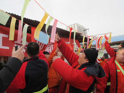 2016年初,北京市东城区环卫中心九所为庆祝春节,举行猜字谜等文娱活动,图为职工踊跃参加活动现场。(作者 刘晓寅)
