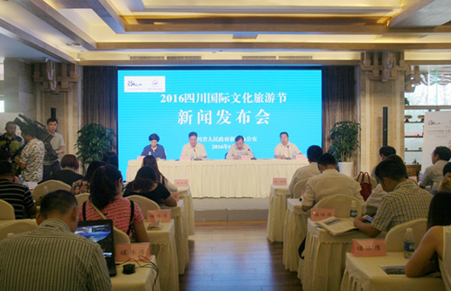 6月29日,2016四川国际文化旅游节新闻发布会在成都召开。据悉,本届文化旅游节将于7月23日至28日在四川凉山举行。省政府新闻办副主任代光举,省旅游发展委副主任宋铭,凉山州委副书记、州长罗凉清,凉山州委副书记陈忠义,凉山州政府秘书长石一鲁实出席发布会。