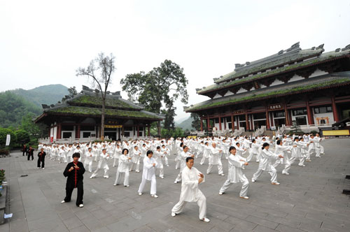 历史上,无数高道隐士、骚人墨客、政界名流如唐代著名法师杜光庭,后晋道教宗师陈抟,明代张三丰等的足迹曾遍历鹤鸣山,留下了许多胜迹。晚年好道的嘉靖皇帝还将鹤鸣山选定为全国举行"祈天永命大醮"的五大醮坛之一。极盛时,鹤鸣山建有一百零八寺、四十八庵。相当于现代一个中等城市的规模。因之使鹤鸣山原来这个"山谷穷处"成为全国驰名的道教圣地,名扬海内外。