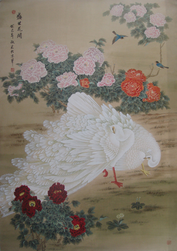 毛淑宏在多年艺术沉淀的基础上,很好地继承和发展了古代先贤工笔花鸟的精神和技法,追求工写合一的笔墨艺术,在造型与笔墨的处理上产生质的飞跃。作为一位脚踏实地的艺术实践者和开拓者,画家一方面继承着中华民族的文化传统,另一方面又努力吸收了西方艺术的精髓。如此兼收并蓄之下,她才能把写实、抽象、工笔、印象等诸多手法巧妙溶为一体,产生了意想不到笔墨美感。其作品线条变化万端,笔墨酣畅淋漓,体现出以形写神的深厚功力。在她的工笔花鸟画中,画家往往通过流畅的弧线来概括形体结构,以精准的直线来描绘关键部位之间的关系,然后再辅以墨色,很好地刻画出花鸟的质感。有些造型复杂花鸟虫鱼,则多用更为繁复多变的曲线来完成。要做到这这些并不容易,必须对工笔画丰富的用笔技巧了如指掌,配合极富变化的线条技法,再经过多年的积累和沉淀,这才有了如此鲜活的花鸟形象,丰富有味的画面意境。